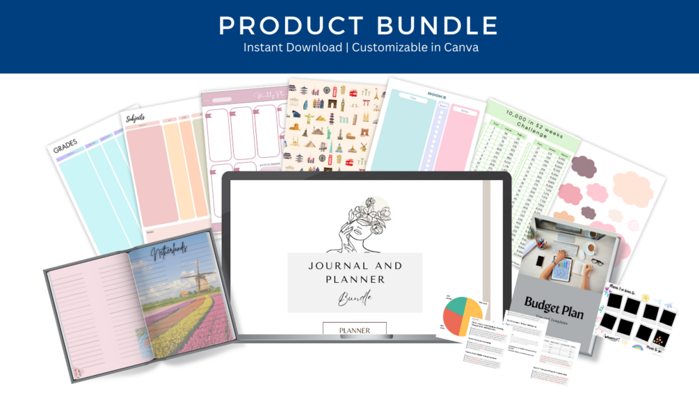 Embrace the power of organization, self-reflection, and personal growth with our Journal and Planner Bundle. Whether you want to achieve more, reduce stress, or simply be more in touch with your inner self, this bundle is a valuable companion on your journey to a fulfilling and balanced life.